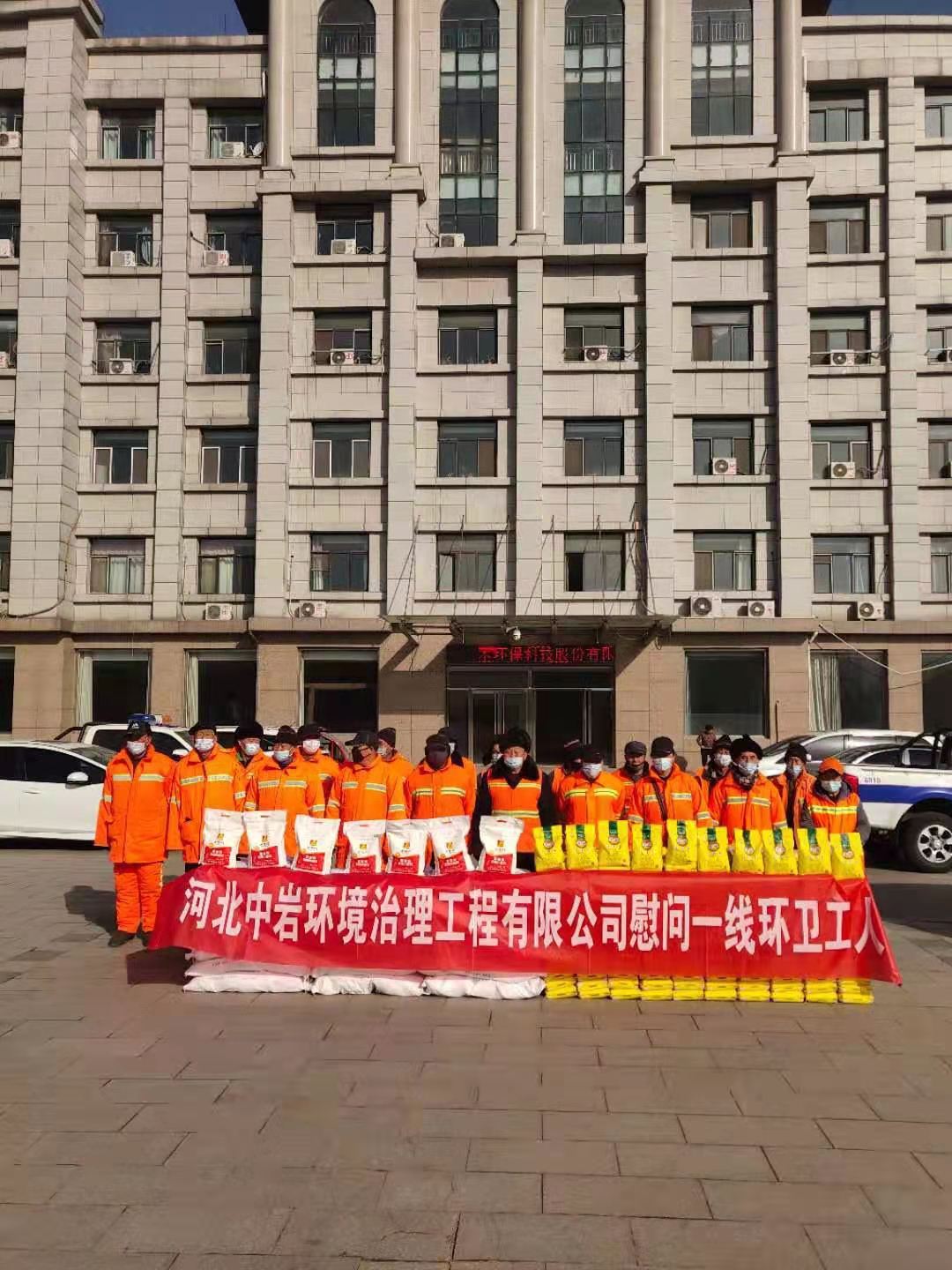 為了表達(dá)對(duì)一線(xiàn)環(huán)衛(wèi)工人的關(guān)懷和祝福,感謝他們?cè)诖汗?jié)期間堅(jiān)守工作崗位,為廣大市民營(yíng)造干凈、整潔、祥和的過(guò)節(jié)環(huán)境。河北中巖環(huán)境治理工程有限公司總經(jīng)理帶領(lǐng)公司副總經(jīng)理等管理層一行帶著價(jià)值5萬(wàn)元的消毒劑、除臭劑和價(jià)值1萬(wàn)元的米面油等生活用品來(lái)慰問(wèn)工作在一線(xiàn)環(huán)衛(wèi)工人,給一線(xiàn)環(huán)衛(wèi)工人送來(lái)新春慰問(wèn),致敬堅(jiān)守在一線(xiàn)的環(huán)衛(wèi)工作者們。